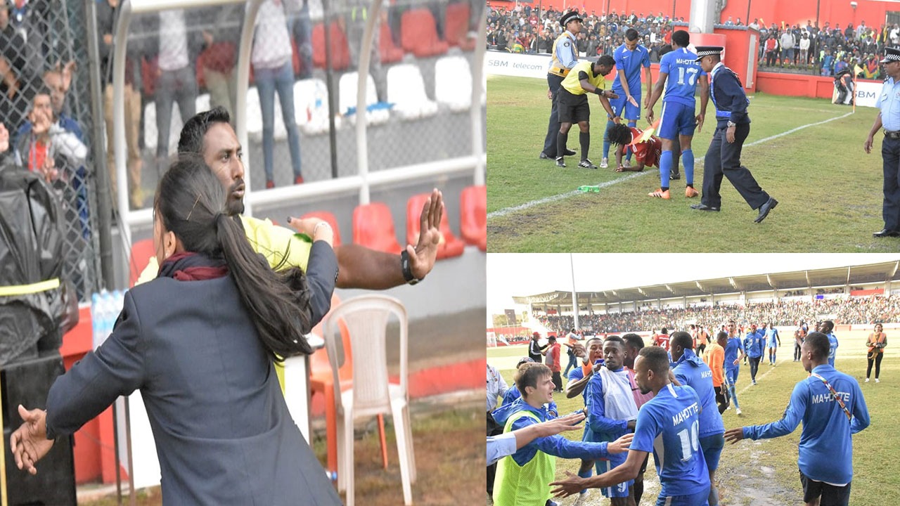Certains joueurs de Mayotte s’en sont pris au corps arbitral après le coup de sifflet final sur la pelouse du stade George V de Curepipe. Les arbitres ont dû sortir sous la protection policière.