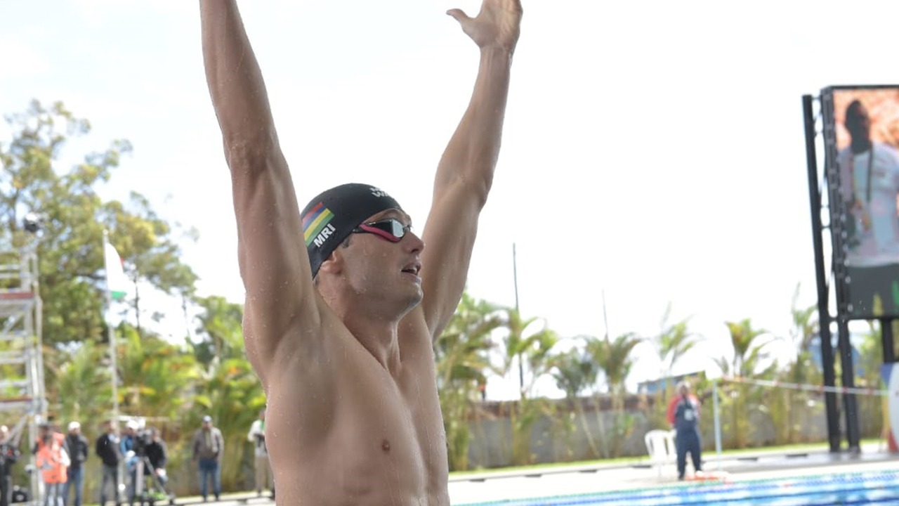 Il devance ainsi dans le bassin olympique le Seychellois, Mathieu Bachmann. Le nageur réunionnais, Grégory Robert, repart avec la médaille de bronze et monte le podium.